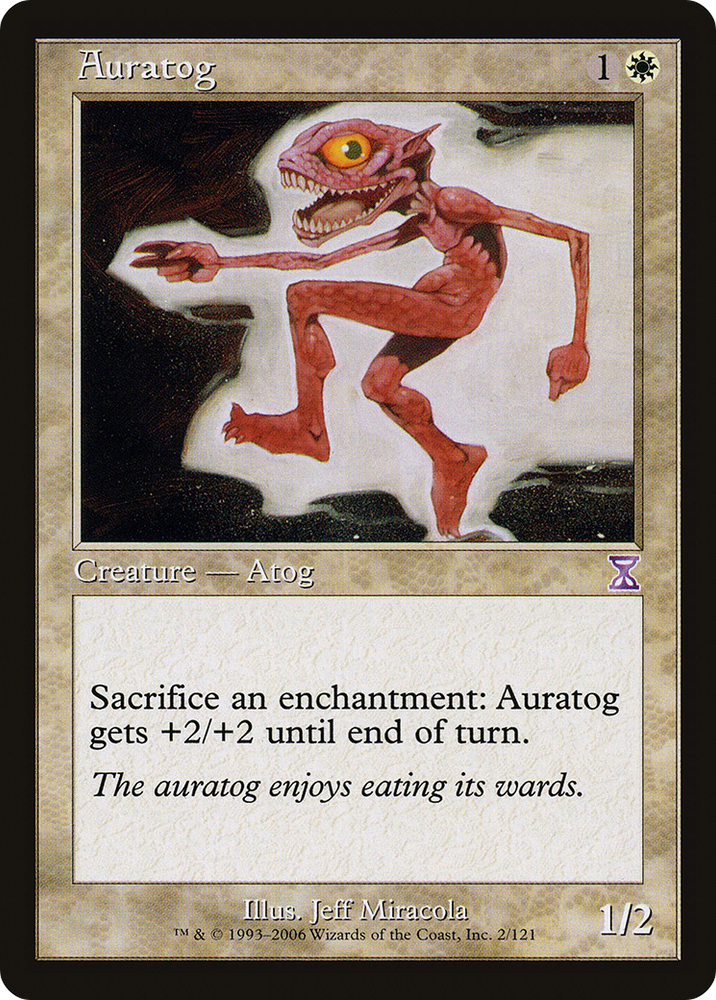 Casting Cost Card TypeCreature — Atog RaritySpecial ArtistJeff Miracola Power/Toughness1/2 Legalities NOT LEGALStandard NOT LEGALFuture NOT LEGALHistoric NOT LEGALTimeless NOT LEGALGladiator NOT LEGALPioneer LEGALModern LEGALLegacy NOT LEGALPauper LEGALVintage LEGALPenny LEGALCommander LEGALOathbreaker NOT LEGALStandardbrawl NOT LEGALBrawl NOT LEGALAlchemy NOT LEGALPauper Commander...