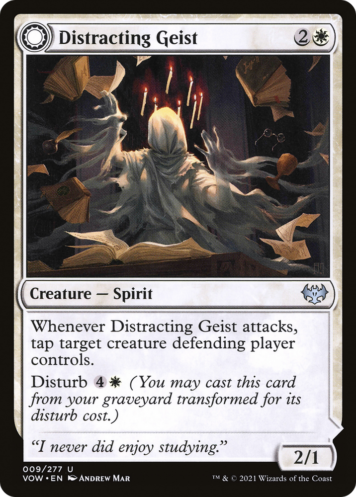 Whenever Distracting Geist attacks, tap target creature defending player controls.