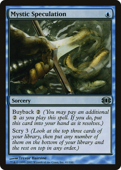 Buyback (You may pay an additional as you cast this spell. If you do, put this card into your hand as it resolves.) Scry 3. (Look at the top three cards of your library, then put any number of them on the bottom and the rest on top in any order.)