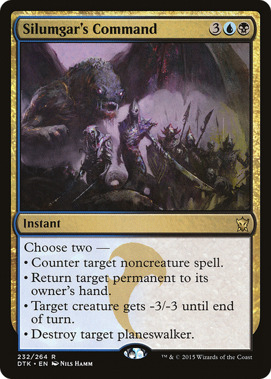Choose two — • Counter target noncreature spell. • Return target permanent to its owner's hand. • Target creature gets -3/-3 until end of turn. • Destroy target planeswalker.