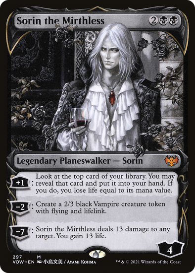 Casting Cost Card TypeLegendary Planeswalker — Sorin RarityMythic ArtistAyami Kojima Legalities NOT LEGALStandard NOT LEGALFuture LEGALHistoric LEGALTimeless LEGALGladiator LEGALPioneer LEGALModern LEGALLegacy NOT LEGALPauper LEGALVintage NOT LEGALPenny LEGALCommander LEGALOathbreaker NOT LEGALStandardbrawl LEGALBrawl NOT LEGALAlchemy NOT LEGALPauper Commander LEGALDuel NOT LEGALOldschool NOT...