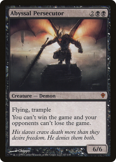 Casting Cost Card TypeCreature — Demon RarityMythic ArtistChippy Power/Toughness6/6 Legalities NOT LEGALStandard NOT LEGALFuture NOT LEGALHistoric NOT LEGALTimeless NOT LEGALGladiator NOT LEGALPioneer LEGALModern LEGALLegacy NOT LEGALPauper LEGALVintage LEGALPenny LEGALCommander LEGALOathbreaker NOT LEGALStandardbrawl NOT LEGALBrawl NOT LEGALAlchemy NOT LEGALPauper Commander LEGALDuel...