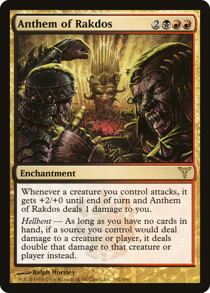 Hellbent — As long as you have no cards in hand, if a source you control would deal damage to a permanent or player, it deals double that damage to that permanent or player instead.