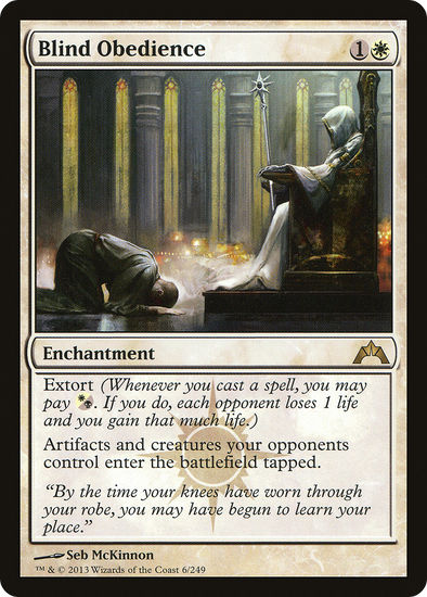 Extort (Whenever you cast a spell, you may pay {W/B}. If you do, each opponent loses 1 life and you gain that much life.) Artifacts and creatures your opponents control enter tapped.
