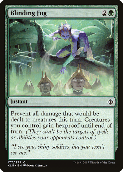 Prevent all damage that would be dealt to creatures this turn. Creatures you control gain hexproof until end of turn. (They can't be the targets of spells or abilities your opponents control.)