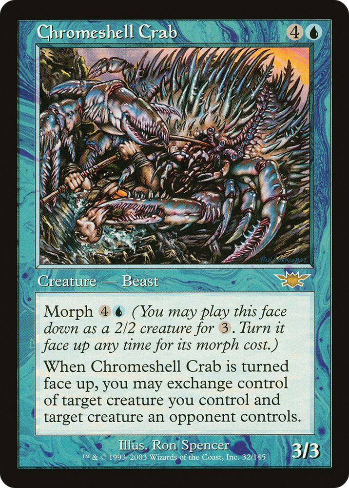 Casting Cost Card TypeCreature — Crab Beast RarityRare ArtistRon Spencer Power/Toughness3/3 Legalities NOT LEGALStandard NOT LEGALFuture NOT LEGALHistoric NOT LEGALTimeless NOT LEGALGladiator NOT LEGALPioneer NOT LEGALModern LEGALLegacy NOT LEGALPauper LEGALVintage LEGALPenny LEGALCommander LEGALOathbreaker NOT LEGALStandardbrawl NOT LEGALBrawl NOT LEGALAlchemy NOT...