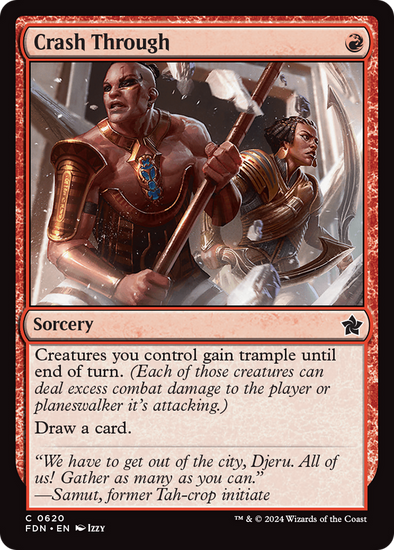 Creatures you control gain trample until end of turn. (A creature with trample can deal excess combat damage to the player or planeswalker it's attacking.)
