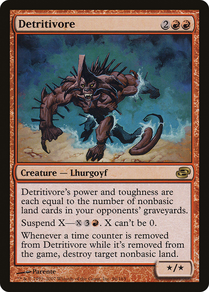 Detritivore's power and toughness are each equal to the number of nonbasic land cards in your opponents' graveyards.