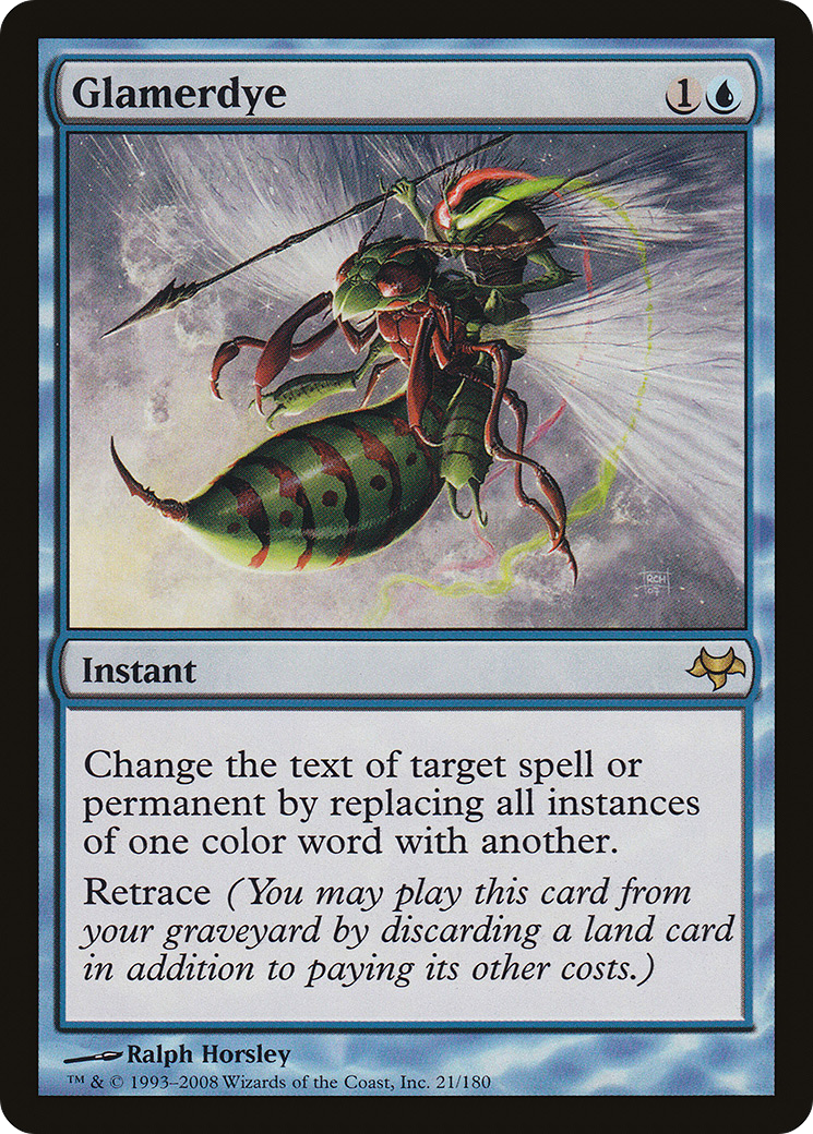 Change the text of target spell or permanent by replacing all instances of one color word with another. Retrace (You may cast this card from your graveyard by discarding a land card in addition to paying its other costs.)