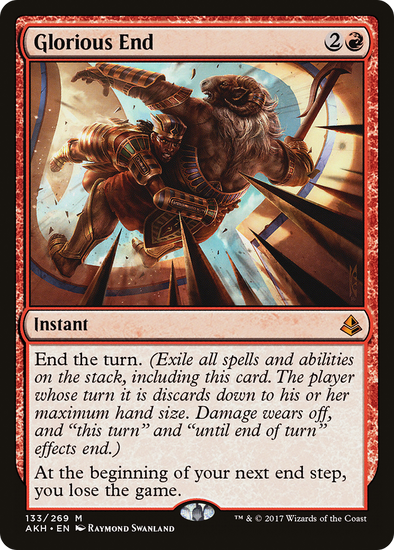 End the turn. (Exile all spells and abilities from the stack, including this card. The player whose turn it is discards down to their maximum hand size. Damage wears off, and "this turn" and "until end of turn" effects end.) At the beginning of your next end step, you lose the game.