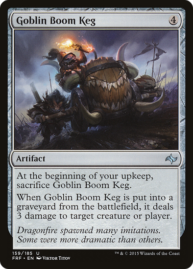 At the beginning of your upkeep, sacrifice this artifact. When this artifact is put into a graveyard from the battlefield, it deals 3 damage to any target.