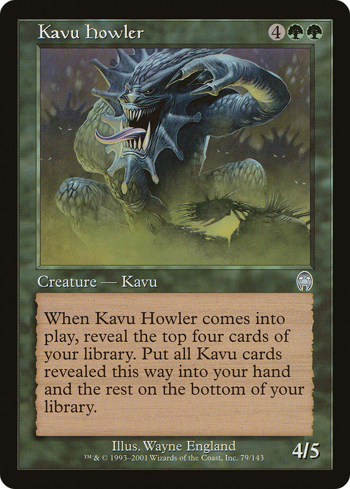 When this creature enters, reveal the top four cards of your library. Put all Kavu cards revealed this way into your hand and the rest on the bottom of your library in any order.