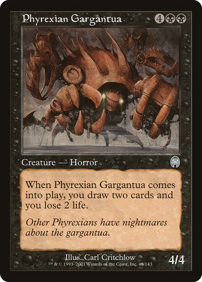 Casting Cost Card TypeCreature — Phyrexian Horror RarityUncommon ArtistCarl Critchlow Power/Toughness4/4 Legalities NOT LEGALStandard NOT LEGALFuture LEGALHistoric LEGALTimeless LEGALGladiator LEGALPioneer LEGALModern LEGALLegacy LEGALPauper LEGALVintage NOT LEGALPenny LEGALCommander LEGALOathbreaker NOT LEGALStandardbrawl LEGALBrawl NOT LEGALAlchemy LEGALPauper Commander LEGALDuel NOT LEGALOldschool LEGALPremodern LEGALPredh...