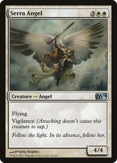Casting Cost Card TypeCreature — Angel RarityUncommon ArtistGreg Staples Power/Toughness4/4 Legalities LEGALStandard LEGALFuture LEGALHistoric LEGALTimeless LEGALGladiator LEGALPioneer LEGALModern LEGALLegacy NOT LEGALPauper LEGALVintage LEGALPenny LEGALCommander LEGALOathbreaker LEGALStandardbrawl LEGALBrawl LEGALAlchemy NOT LEGALPauper Commander LEGALDuel NOT LEGALOldschool LEGALPremodern LEGALPredh FlyingVigilance (Attacking doesn't cause...