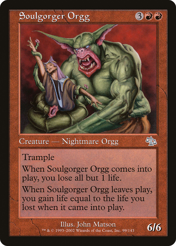 Casting Cost Card TypeCreature — Nightmare Orgg RarityUncommon ArtistJohn Matson Power/Toughness6/6 Legalities NOT LEGALStandard NOT LEGALFuture NOT LEGALHistoric NOT LEGALTimeless NOT LEGALGladiator NOT LEGALPioneer NOT LEGALModern LEGALLegacy NOT LEGALPauper LEGALVintage LEGALPenny LEGALCommander LEGALOathbreaker NOT LEGALStandardbrawl NOT LEGALBrawl NOT LEGALAlchemy NOT...
