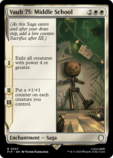 (As this Saga enters and after your draw step, add a lore counter. Sacrifice after III.) I — Exile all creatures with power 4 or greater. II, III — Put a +1/+1 counter on each creature you control.