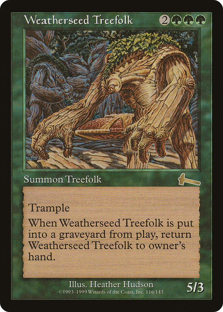 Casting Cost Card TypeCreature — Treefolk RarityRare ArtistHeather Hudson Power/Toughness5/3 Legalities NOT LEGALStandard NOT LEGALFuture NOT LEGALHistoric NOT LEGALTimeless NOT LEGALGladiator NOT LEGALPioneer NOT LEGALModern LEGALLegacy NOT LEGALPauper LEGALVintage LEGALPenny LEGALCommander LEGALOathbreaker NOT LEGALStandardbrawl NOT LEGALBrawl NOT LEGALAlchemy NOT LEGALPauper...